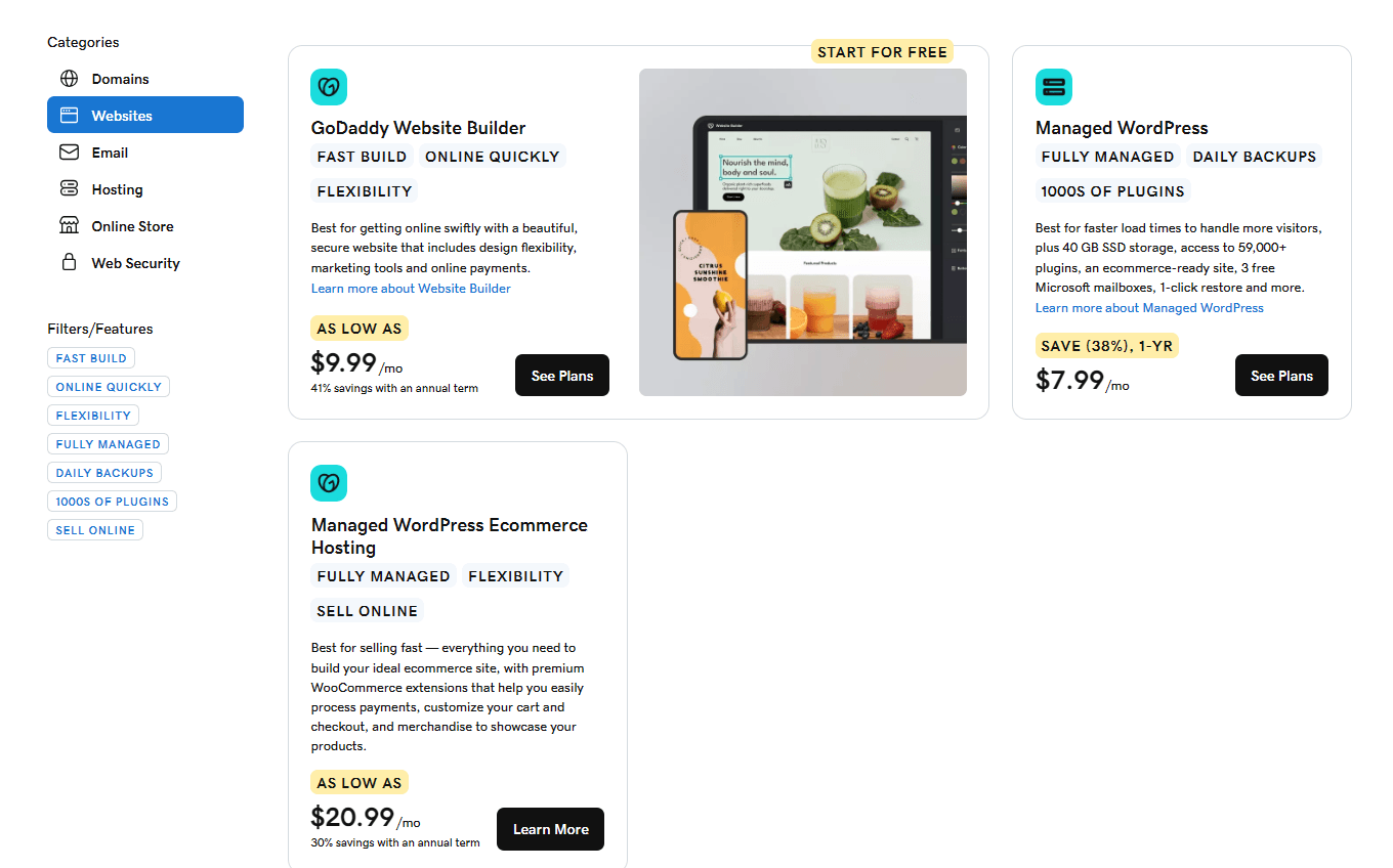 GoDaddy is a slightly more expensive host, though its cheapest shared hosting plan costs only $7.99 per month. WordPress, Business, VPS, and Dedicated hosting are also available.